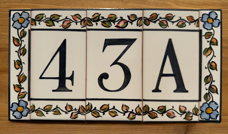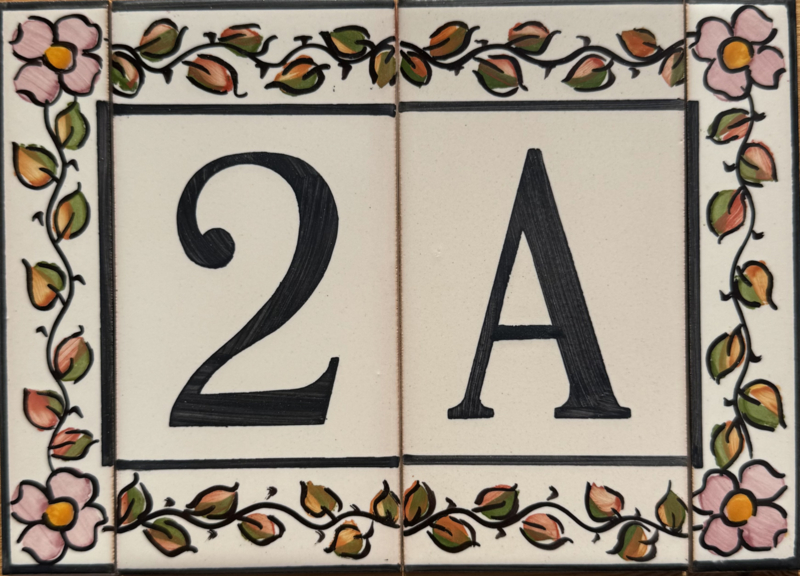 Artikelnummer: AC04036 OverzichtHandbeschilderde letter op tegel. Maak uw eigen samenstelling met de cijfers en de letter die u nodig hebt en kies uw favoriete bloemenkleur uit voor de twee zijrandjes, om de tegels af te sluiten aan de zijkant. Dit wordt zeer waarschinlijk de nieuwe blikvanger bij de ingang van uw woning 🤩🏠