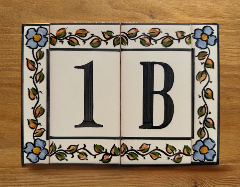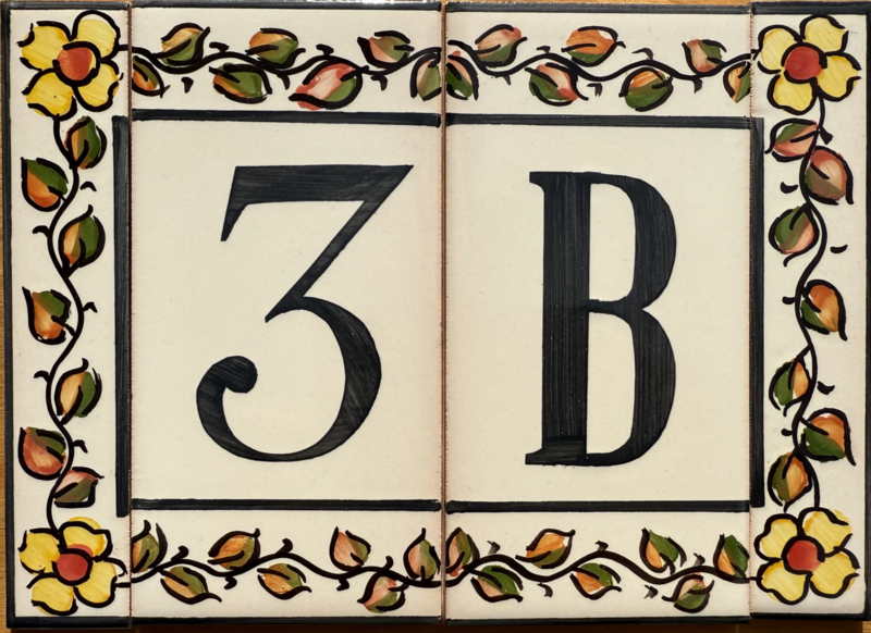 Artikelnummer: AC04037 OverzichtHandbeschilderde letter op tegel. Maak uw eigen samenstelling met de cijfers en de letter die u nodig hebt en kies uw favoriete bloemenkleur uit voor de twee zijrandjes, om de tegels af te sluiten aan de zijkant. Dit wordt zeer waarschinlijk de nieuwe blikvanger bij de ingang van uw woning 🤩🏠