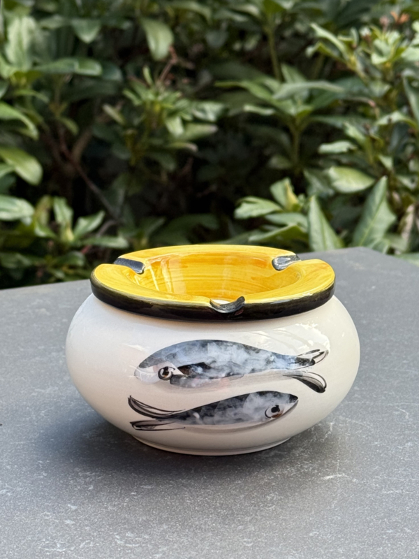 Handbeschilderde Waterasbak Sardines | Geel | Portugees Steengoed | Ø 12 x 7 cm