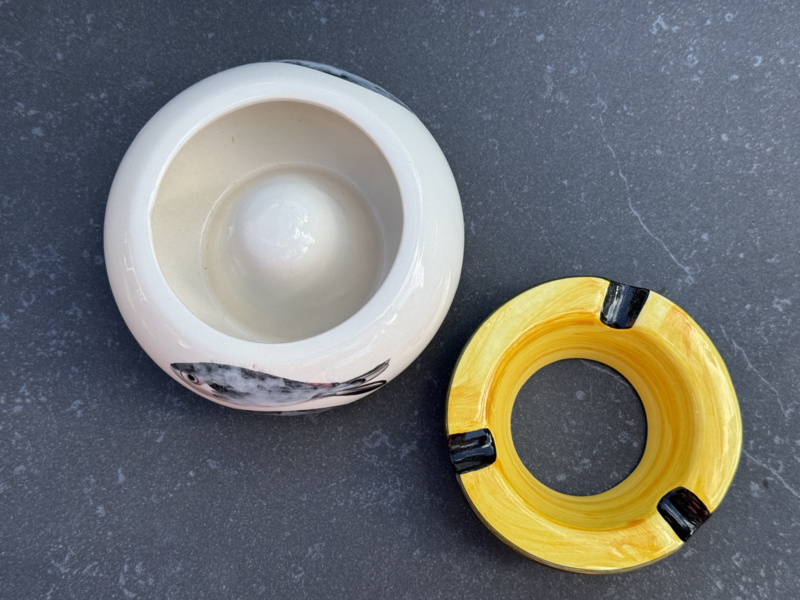 - Eenvoudig onderhoud: Het gladde glazuur aan zowel de binnen- als buitenkant zorgt ervoor dat de asbak altijd eenvoudig te legen en schoon te maken is. Bovendien is hij volledig vaatwasserbestendig.