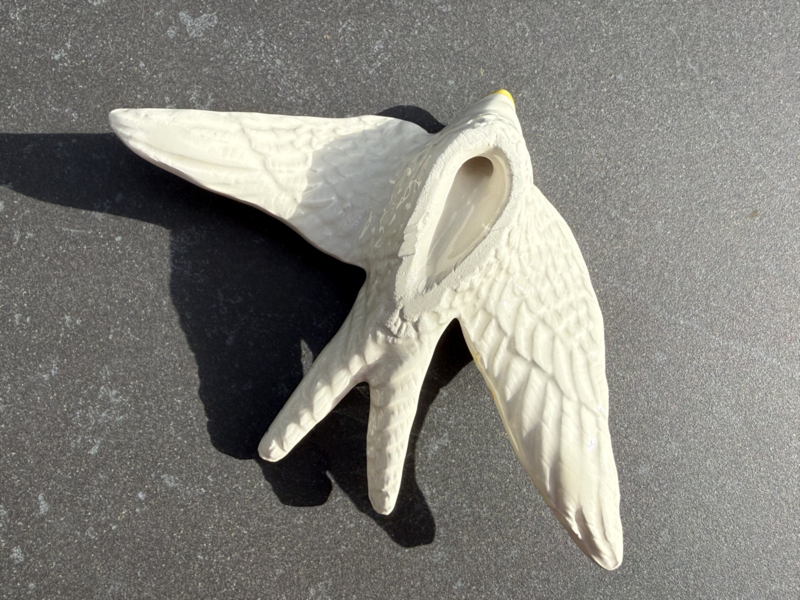 Deze elegante Portugese zwaluw is een prachtig voorbeeld van de iconische Andorinha, die in Portugal symbool staat voor geluk en familie. Het object is vervaardigd met een verfijnd licht reliรซf en gemaakt van een zeer stevige kwaliteit steengoed. Het gedetailleerde patroon en de geglazuurde afwerking geven deze klassieke vorm een warme en opvallende uitstraling die direct een levendig accent toevoegt aan uw interieur of tuin.
