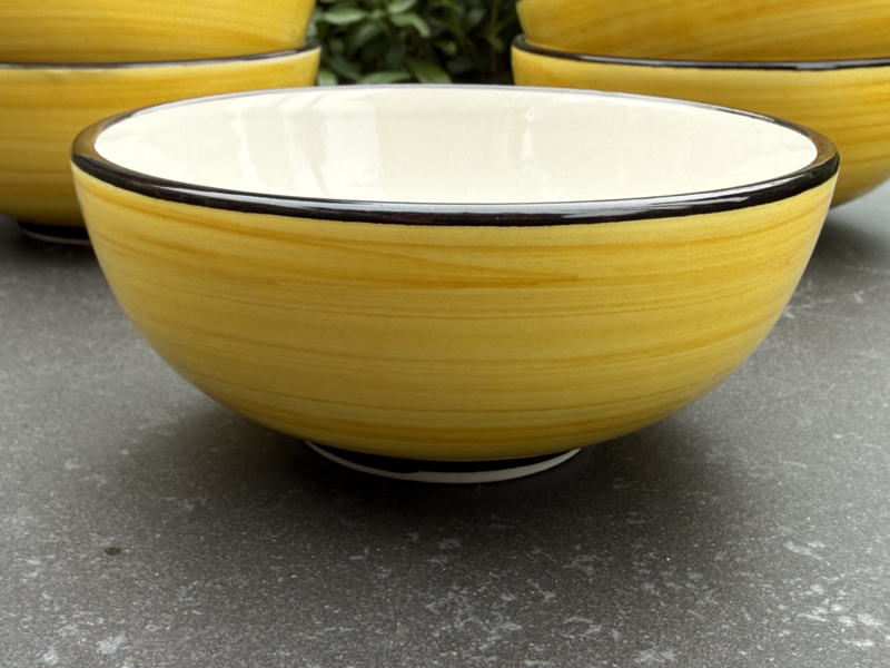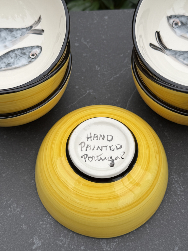 Portugese Kom Sardines | Geel met Zwart | Handbeschilderd Steengoed | 250 ml