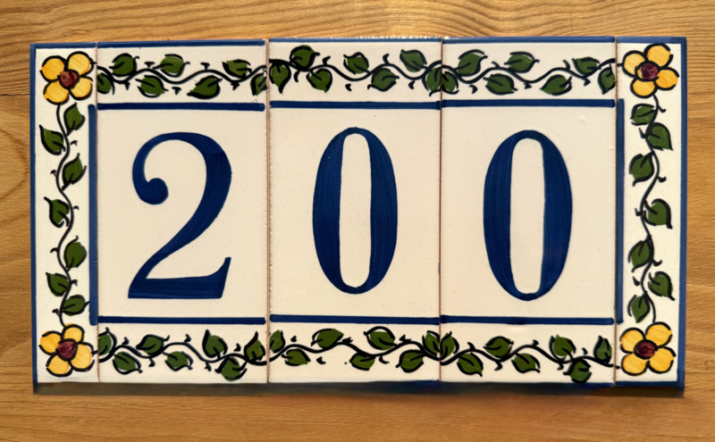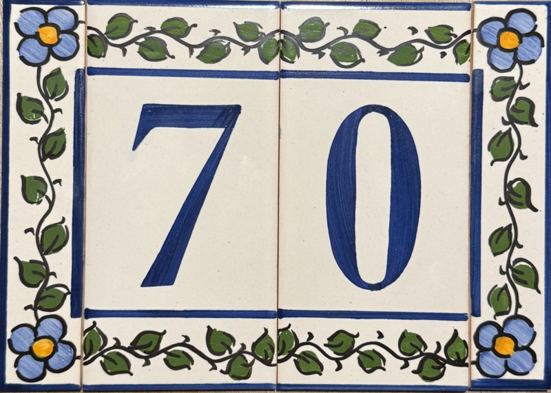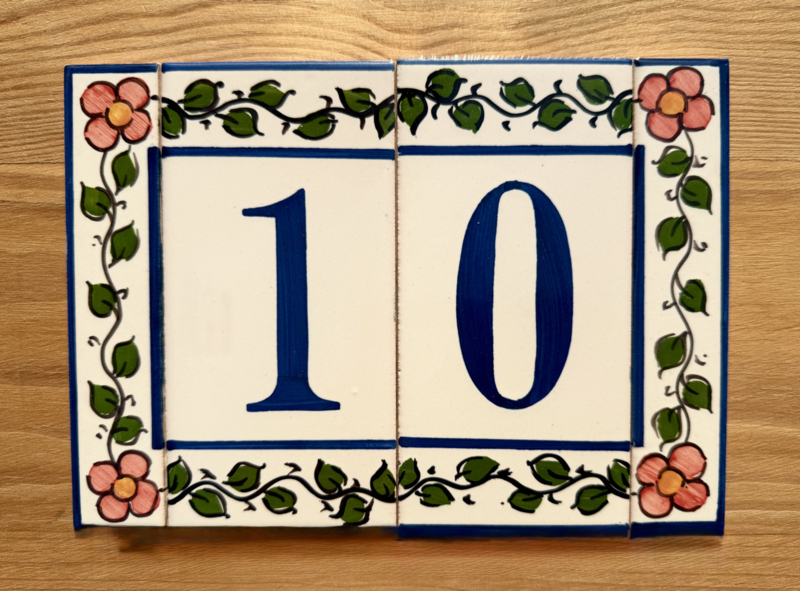 Artikelnummer: AC04000 OverzichtHandbeschilderd huisnummer op tegel. Maak uw eigen samenstelling met de cijfers die u nodig hebt en kies uw favoriete bloemenkleur uit voor de twee zijrandjes, om de tegels af te sluiten aan de zijkant. Dit wordt zeer waarschinlijk de nieuwe blikvanger bij de ingang van uw woning 🤩🏠
