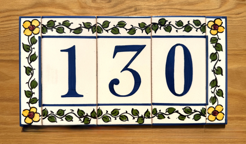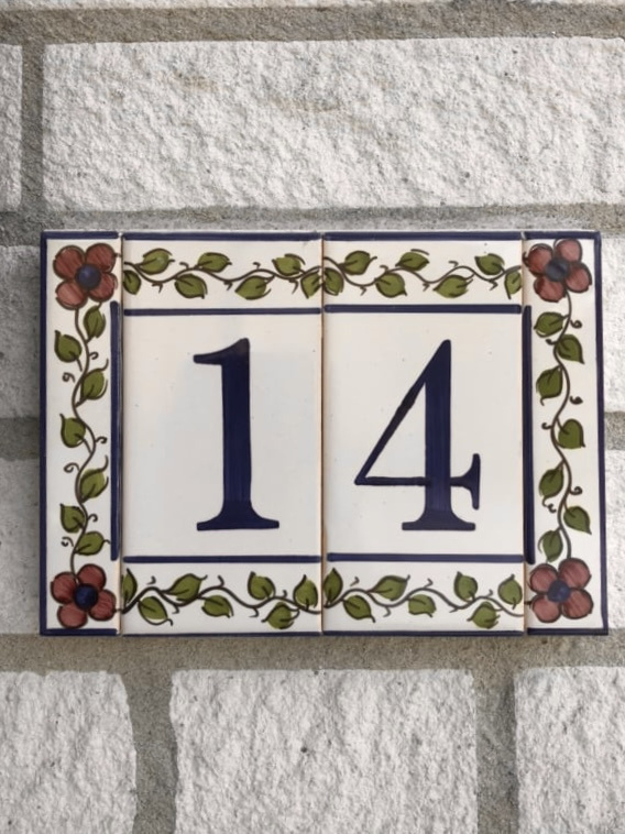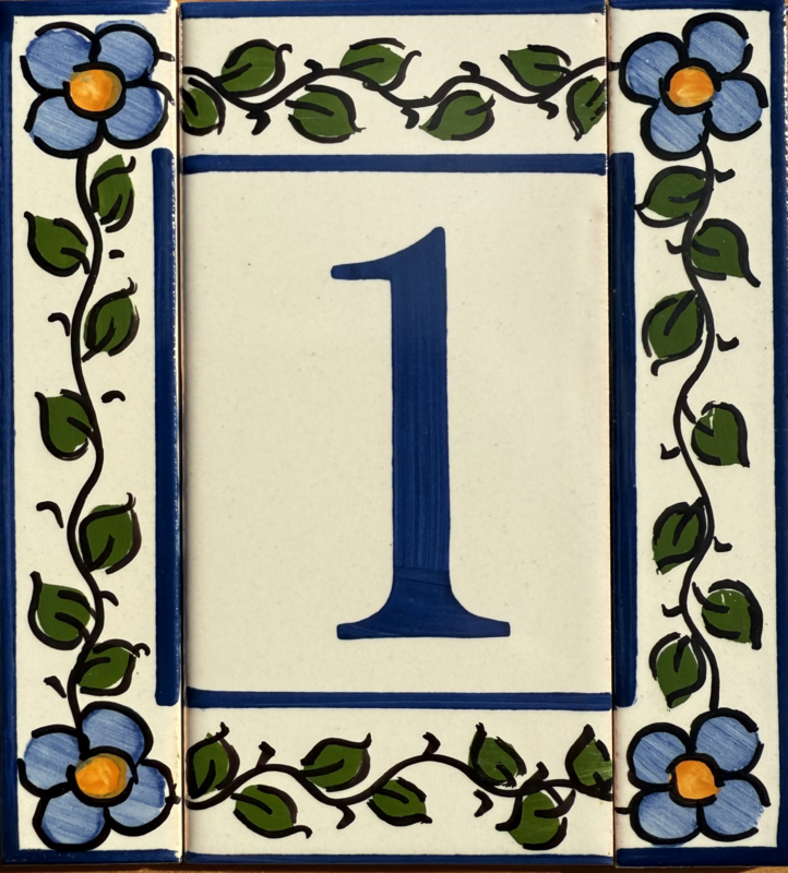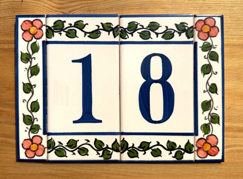 Artikelnummer: AC04001 OverzichtHandbeschilderd huisnummer op tegel. Maak uw eigen samenstelling met de cijfers die u nodig hebt en kies uw favoriete bloemenkleur uit voor de twee zijrandjes, om de tegels af te sluiten aan de zijkant. Dit wordt zeer waarschinlijk de nieuwe blikvanger bij de ingang van uw woning 🤩🏠