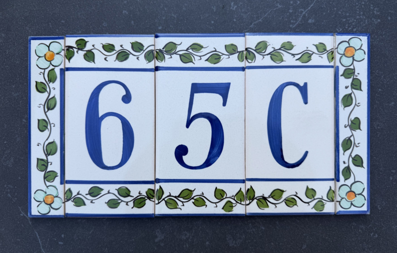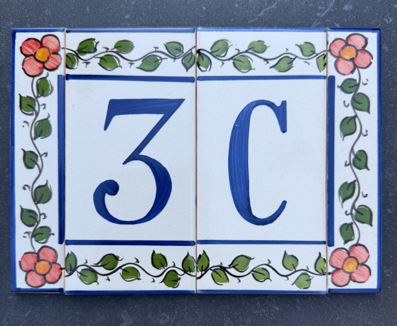 Artikelnummer: AC04013 OverzichtHandbeschilderde letter op tegel. Maak uw eigen samenstelling met de cijfers en de letter die u nodig hebt en kies uw favoriete bloemenkleur uit voor de twee zijrandjes, om de tegels af te sluiten aan de zijkant. Dit wordt zeer waarschinlijk de nieuwe blikvanger bij de ingang van uw woning 🤩🏠