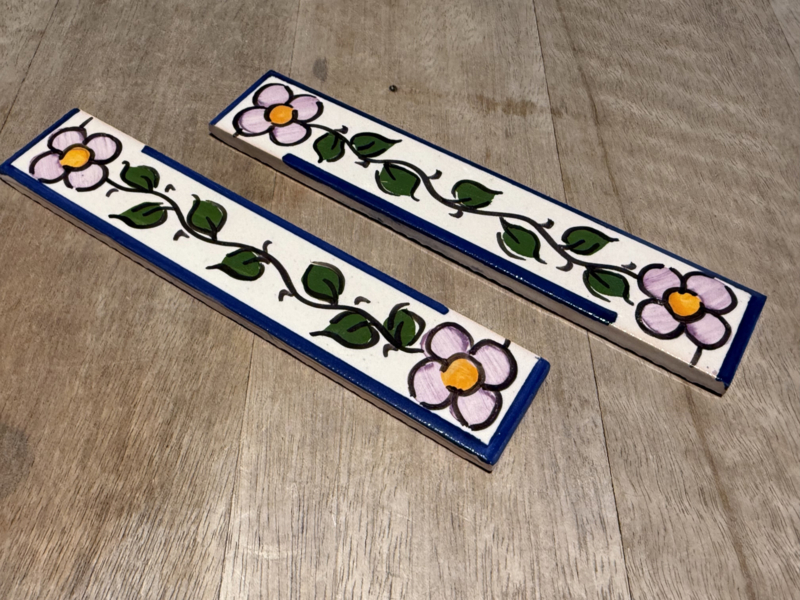 Keramische rand Lisboa / lichtpaarse bloemen (15x3cm)
