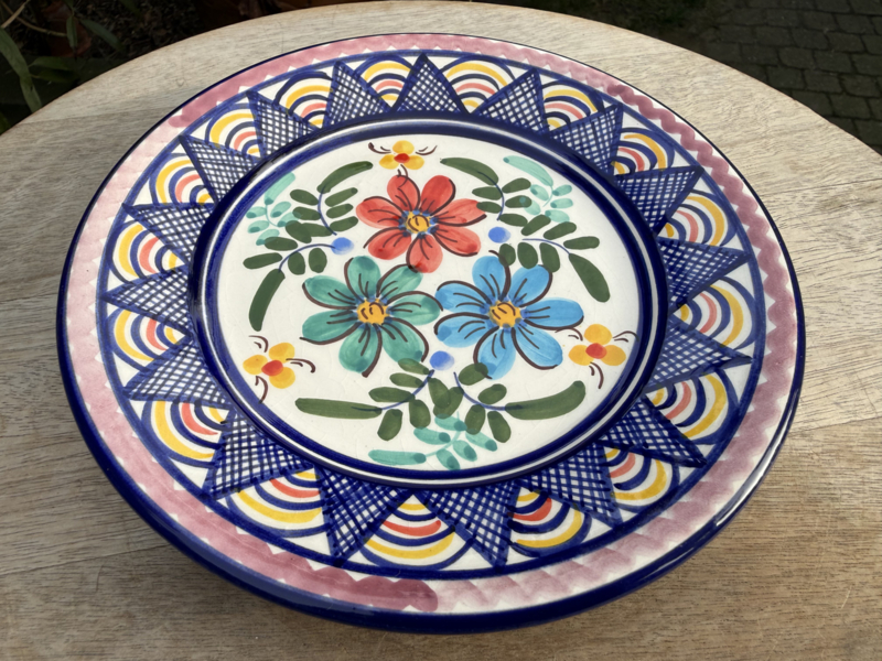 Een prachtig stukje Portugees vakmanschap: dit zeer decoratieve, kleine tapasbordje is een ware blikvanger op uw tafel. Vervaardigd uit stevige kwaliteit aardewerk, is het een veelzijdig bordje geschikt voor allerlei toepassingen, van het serveren van tapas en kleine hapjes tot het presenteren van desserts. Het bordje is volledig handgemaakt en beschilderd, wat elk exemplaar een unieke en sfeervolle uitstraling geeft.
