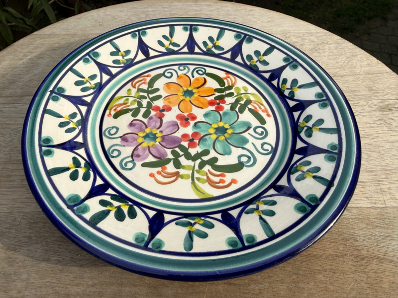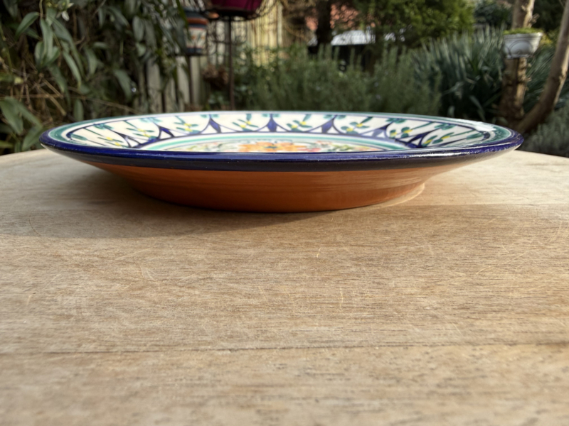 Een prachtig stukje Portugees vakmanschap: dit zeer decoratieve, kleine tapasbordje is een ware blikvanger op uw tafel. Vervaardigd uit stevige kwaliteit aardewerk, is het een veelzijdig bordje geschikt voor allerlei toepassingen, van het serveren van tapas en kleine hapjes tot het presenteren van desserts. Het bordje is volledig handgemaakt en beschilderd, wat elk exemplaar een unieke en sfeervolle uitstraling geeft.