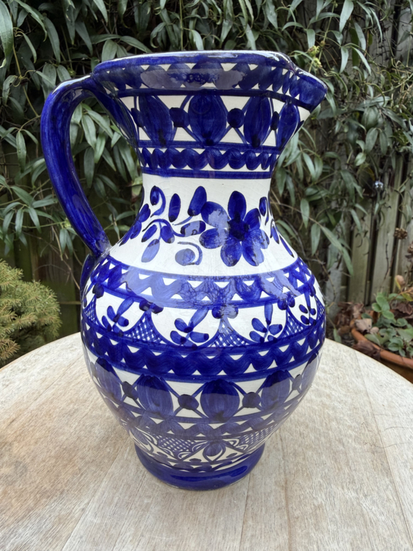 Artikelnummer: NP02203 OverzichtHandgemaakte Portugese Schenkkan (1L) β Klassiek Blauw Bloemmotief