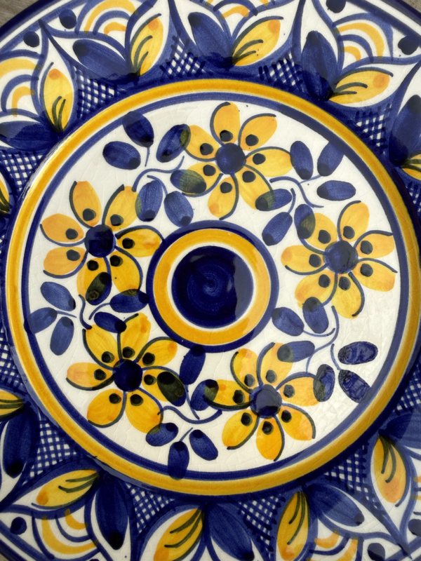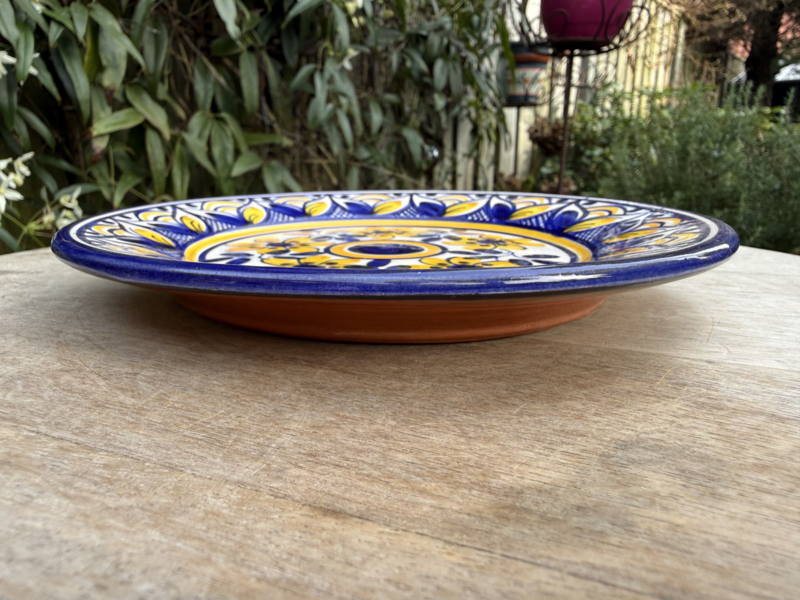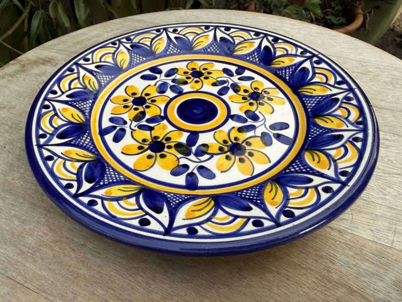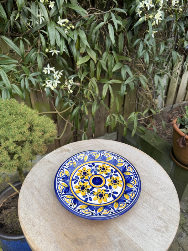 Een prachtig stukje Portugees vakmanschap: dit zeer decoratieve, kleine tapasbordje is een ware blikvanger op uw tafel. Vervaardigd uit stevige kwaliteit aardewerk, is het een veelzijdig bordje geschikt voor allerlei toepassingen, van het serveren van tapas en kleine hapjes tot het presenteren van desserts. Het bordje is volledig handgemaakt en beschilderd, wat elk exemplaar een unieke en sfeervolle uitstraling geeft.
