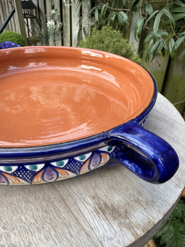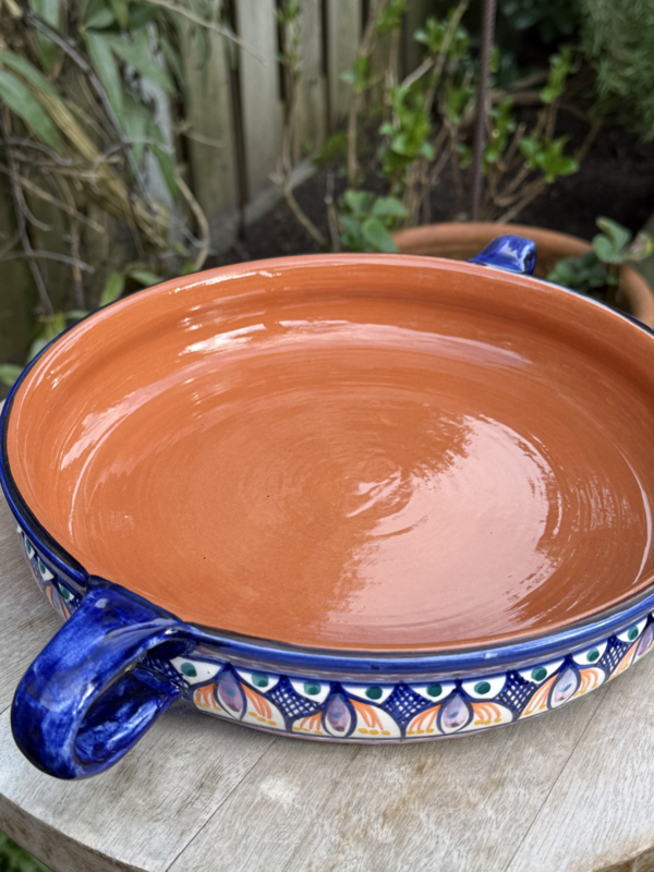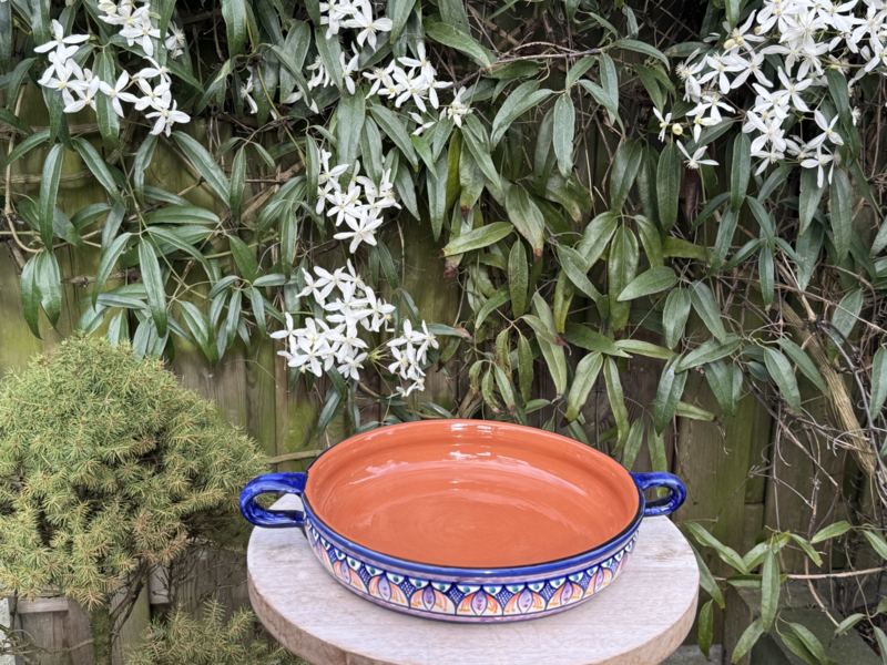 Deze handgemaakte en handbeschilderde ronde ovenschaal van zeer robuuste kwaliteit aardewerk brengt de authentieke sfeer van de Alentejo rechtstreeks naar uw keuken. De prachtige schaal is niet alleen een krachtig hulpmiddel voor uw favoriete ovengerechten, maar ook een stijlvol pronkstuk dat als serveerschaal direct de aandacht trekt op uw gedekte tafel.