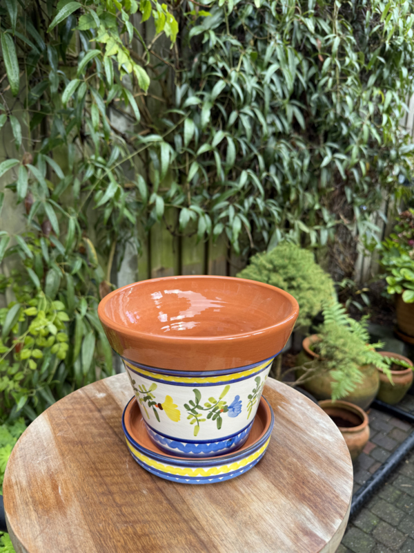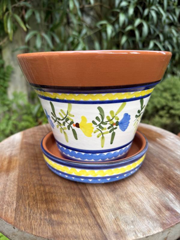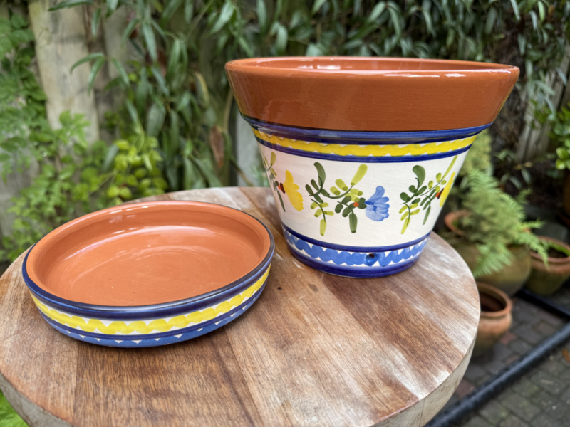 Portugese Bloempot Monsaraz met Schotel | Kleurrijk Decor | Handgemaakt Aardewerk | Γ 20 cm